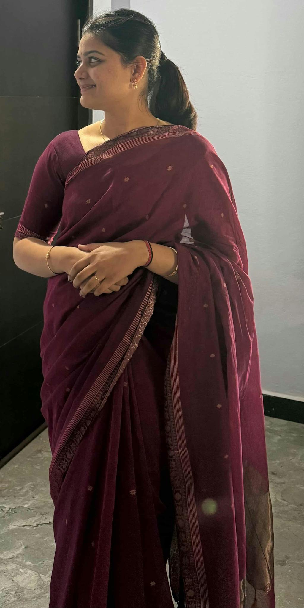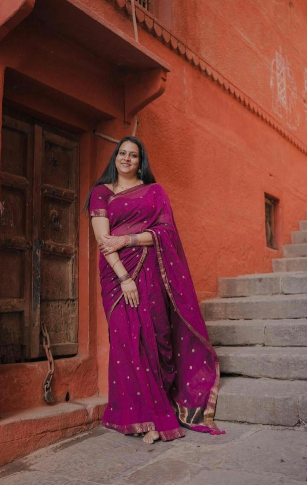 This wine colour handloom cotton saree with handmade tassels is perfect for everyday use and ideal for summers. Its lightweight fabric, intricate woven details, and elegant drape make it a timeless choice for effortless ethnic styling.