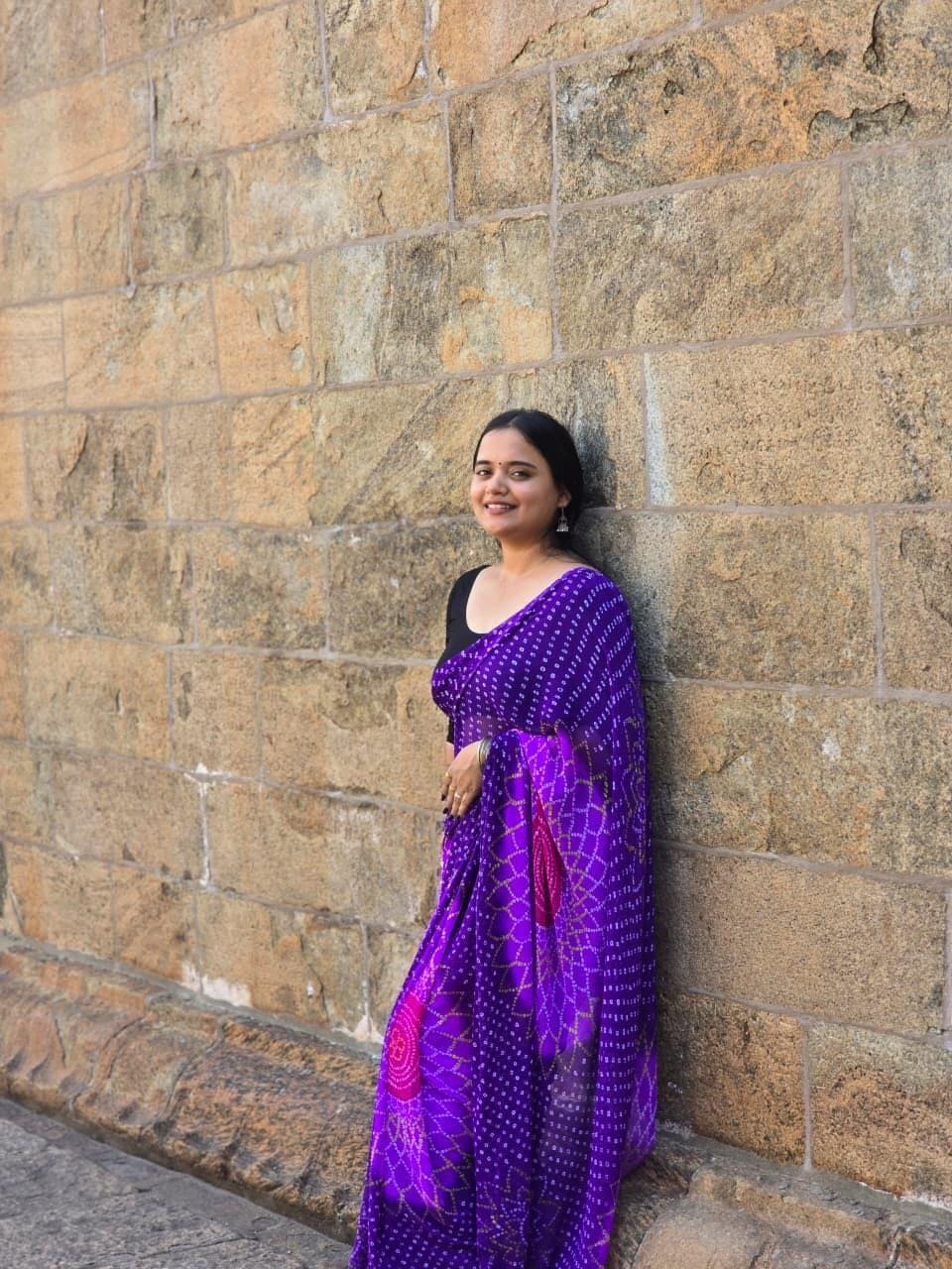 Bring on the festive glam with our bright georgette bandhej saree! ✨