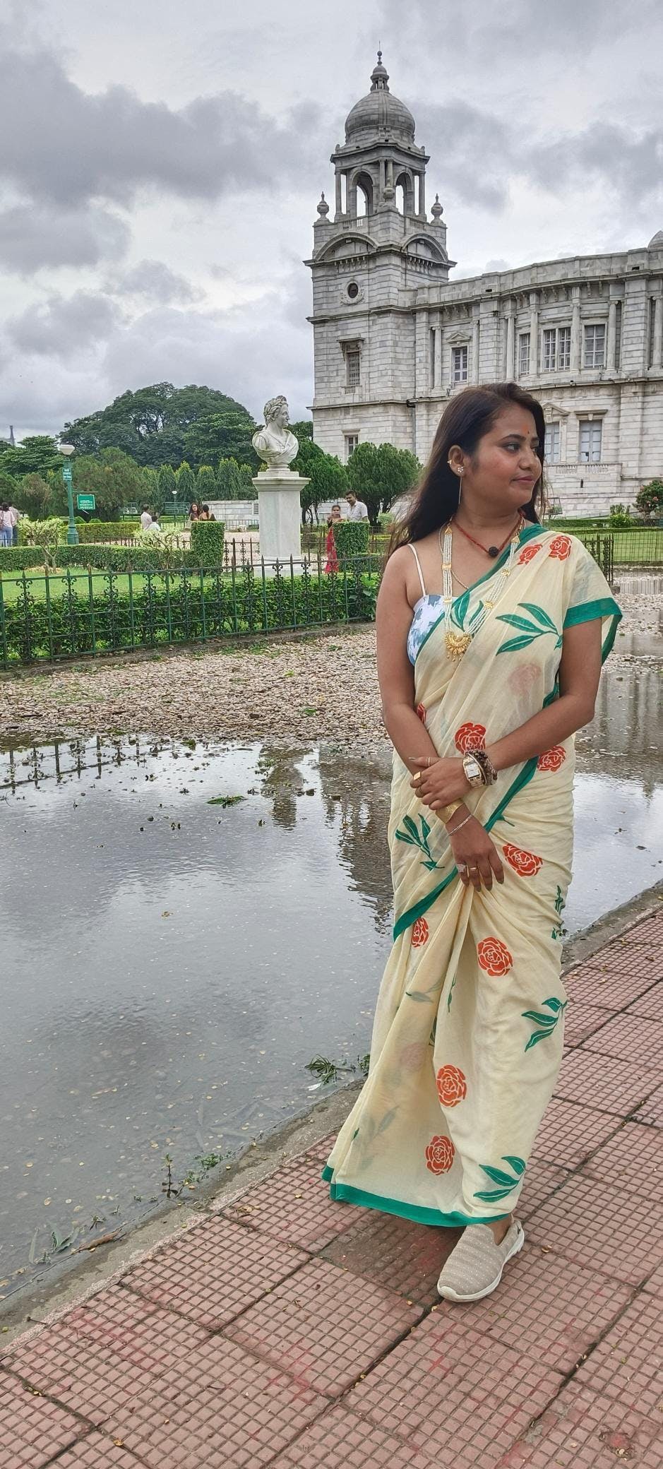 A dreamy blend of orange & green in soft mul mul cotton, blooming with rose prints and finished with premium lace. Straight out of Pinterest, it’s that effortlessly aesthetic drape you’ve been searching for