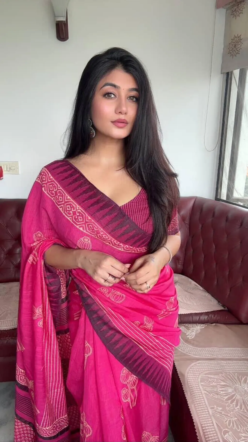 A saree that feels like a soft summer breeze - this Pink katan cotton & linen Saree is hand block printed with love and care. The temple border adds a hint of nostalgia, inspired by age-old craftsmanship from Indian looms. Whether it's a haldi ceremony or a quiet brunch, this saree is a graceful companion.