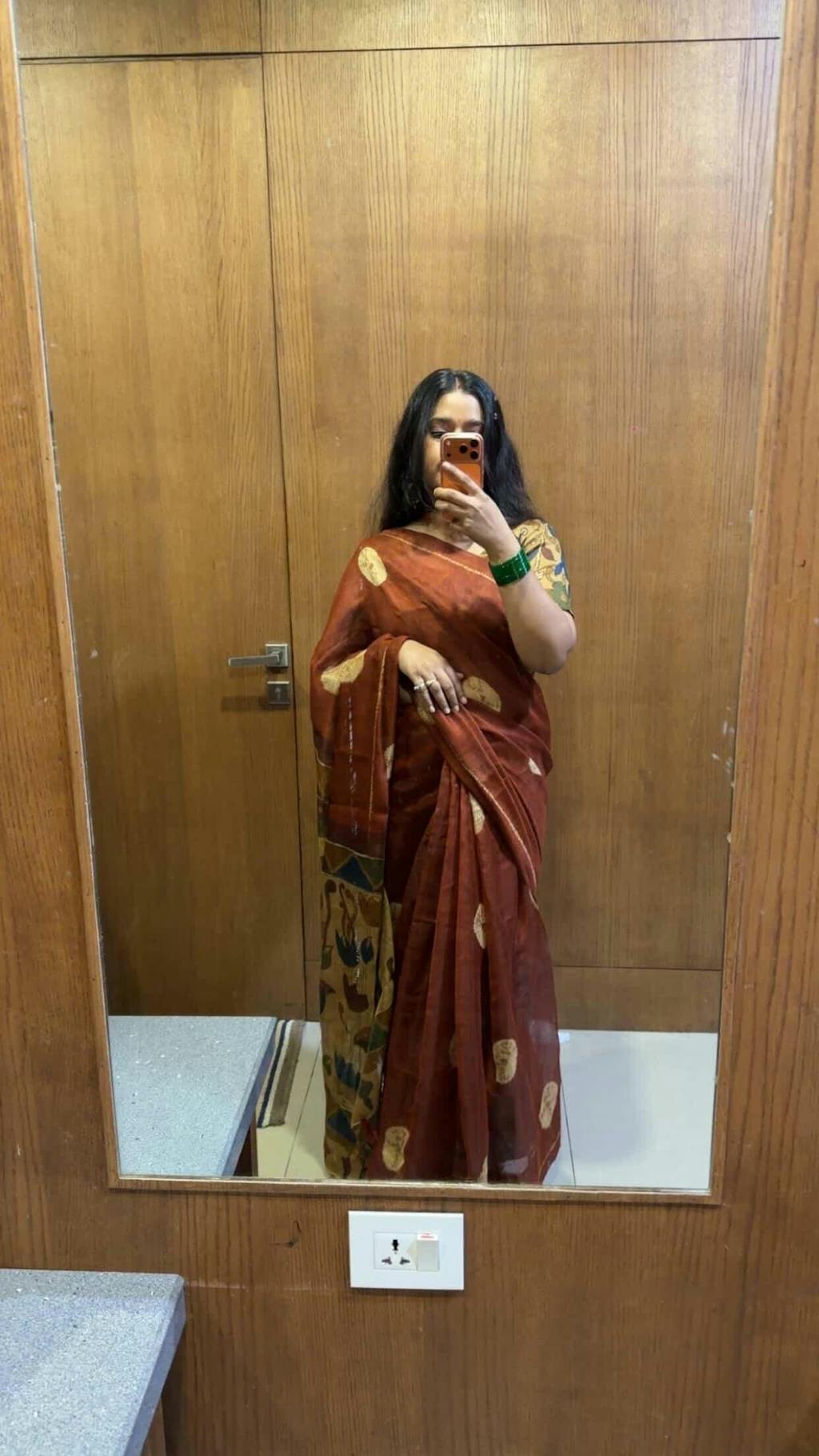 Embrace timeless elegance with the Shonita Saree β a masterpiece of rust-brown handloom fabric adorned with intricate kalmakari art. This sustainable drape exudes earthy sophistication, making it perfect for cultural events, festivities, and heritage fashion lovers.
